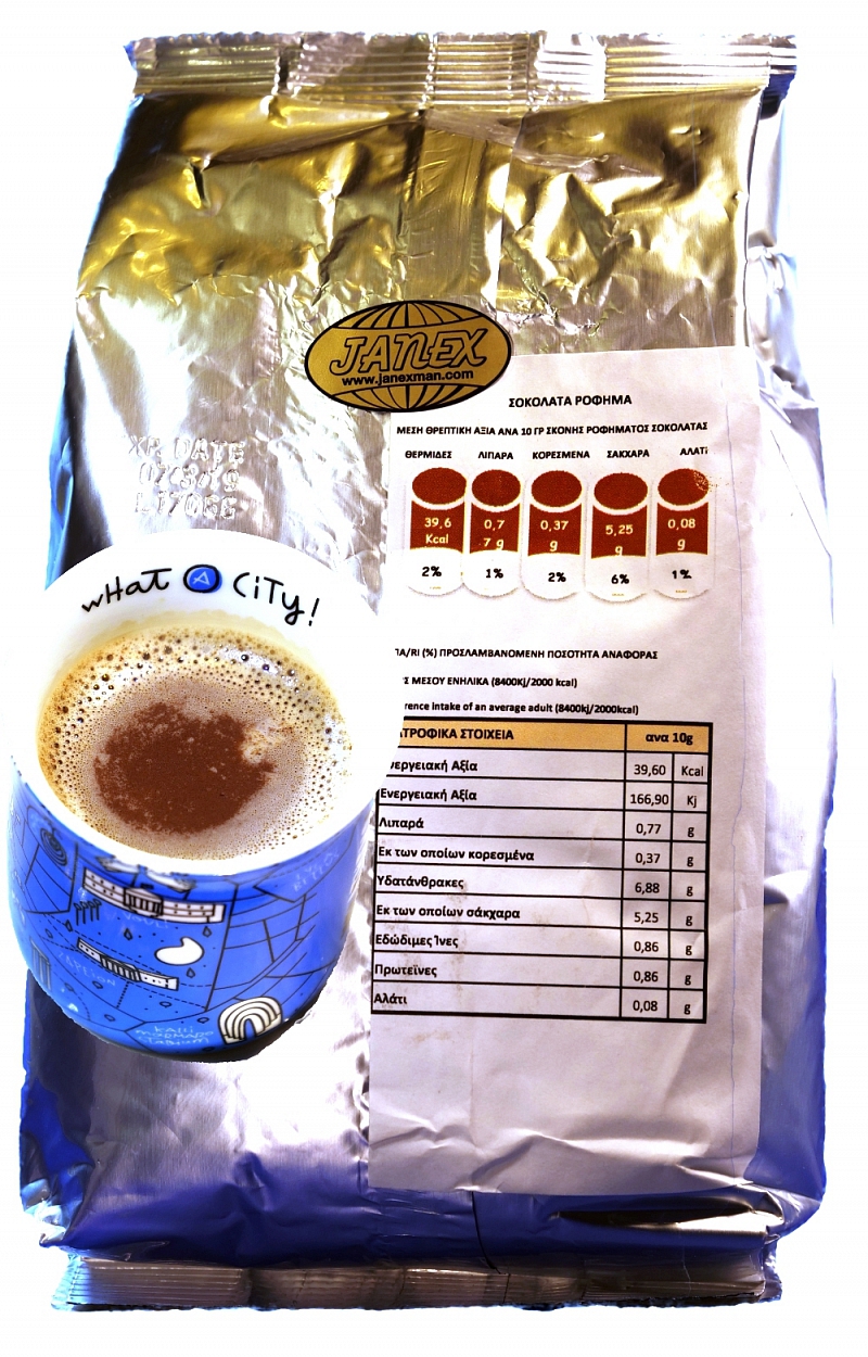 Čokoládový nápoj RAW-prášok Zloženie: kakao (obsah tuku 20-22%), cukor, kukuričný škrob, soľ. vákuové balenie: 1kg Krajina pôvodu: Grécko Výrobca: SONS G. OUZOUNOGLOU S. A.