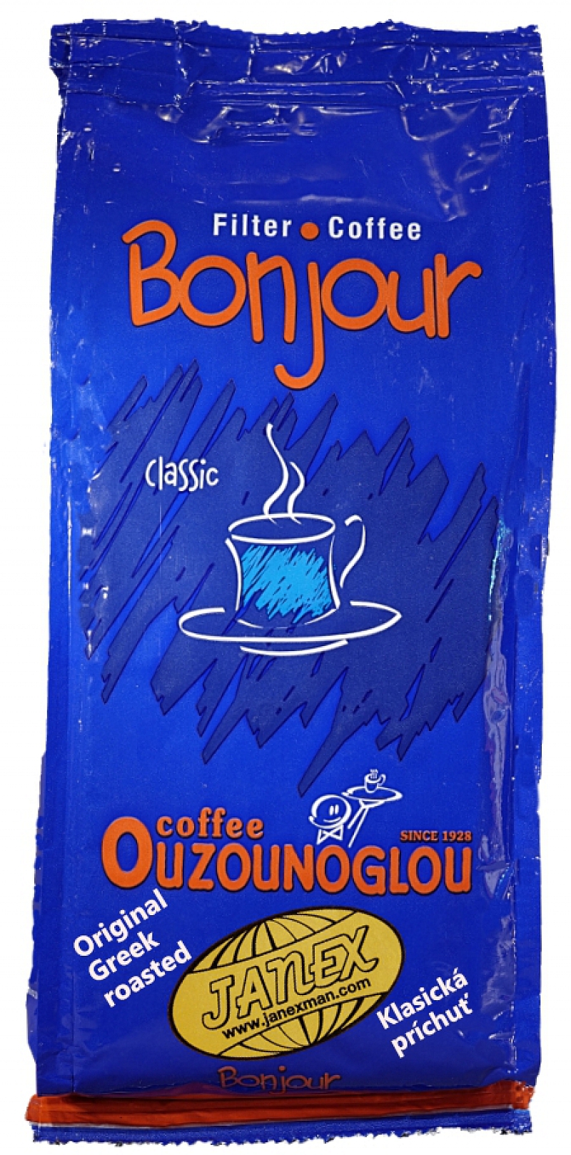 Ouzounoglou, 100% arabica mletá káva pražená Bonjour 250g, pôvod Brazília, miesto praženia Grécko, vákuové balenie: 250g