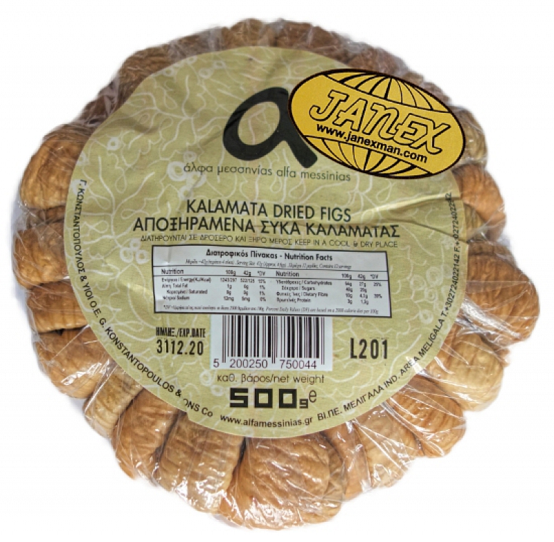 Sušené figy sú prírodné lahôdky, ktoré sú úplne synonymom regiónu Kalamata. Chutné, výživné a zdravé, sušené figy Kalamata sú sušené na slnku prirodzeným procesom bez akýchkoľvek chemických prísad. Figy Kalamata sa zavesia nerozrezané ako celé ovocie a vystavia sa slnku, pevne zviazané na paliciach. Vyhľadávaný zdroj energie pre ľudský organizmus, nenahraditeľný pre vysokú koncentráciu minerálov a vlákniny.