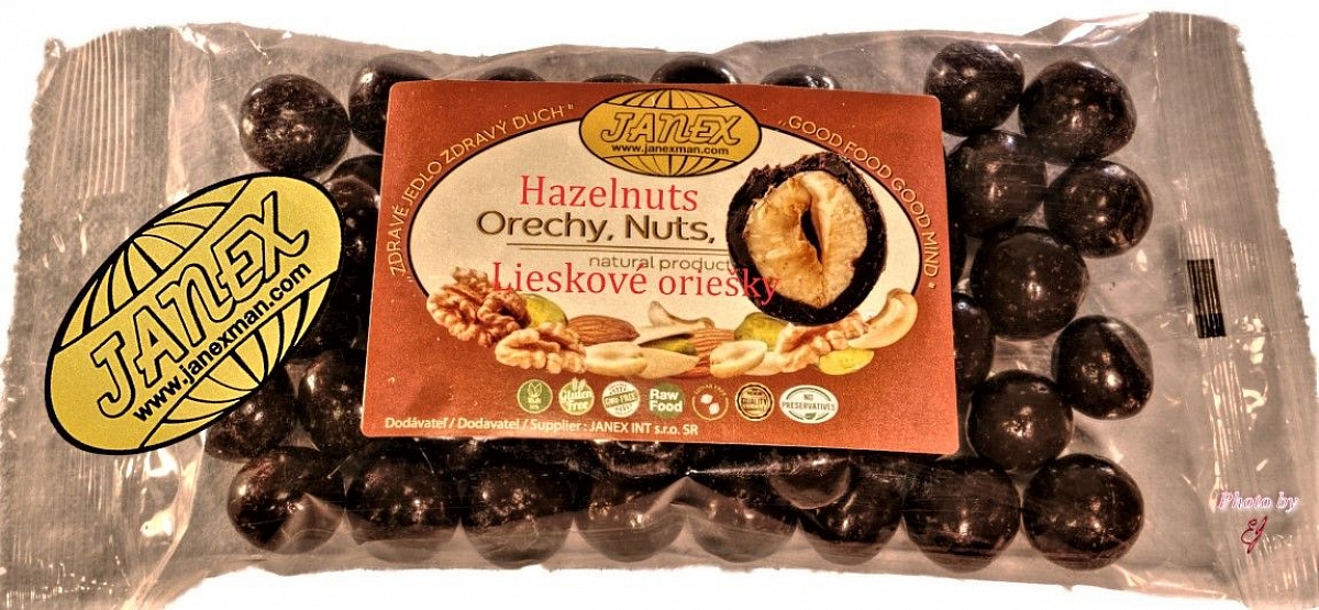 Zloženie: Horká čokoláda 74,5 % (cukor, kakaová hmota, kakaové maslo, emulgátory (sójový lecitín a polyglycerol - polyricín oleát) vanilínový extrakt. Jadrá lieskovcov 25 %. Modifikovaný šrob (dextrín). Kakaový prášok so zníženým obsahom tuku (-0,5 %) Sušené mlieko. Horká čokoláda obsahuje 51 % kakaových súčastí. balenie: 200 g, 600 g, 1000 g Môže obsahovať iné orechy, arašidy a sezam. Alergény sú v zložení vyznačené hrubším písmom.