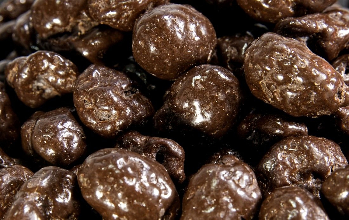 Zloženie: arašidy pražené 35 %, hrozienka biele sultánky 15 %, horká čokoláda 50 % (cukor, kakaová hmota, kakaové maslo, emulgátory (sójový lecitín a polyglycerol - polyricín oleát) vanilínový extrakt. Modifikovaný šrob (dextrín).