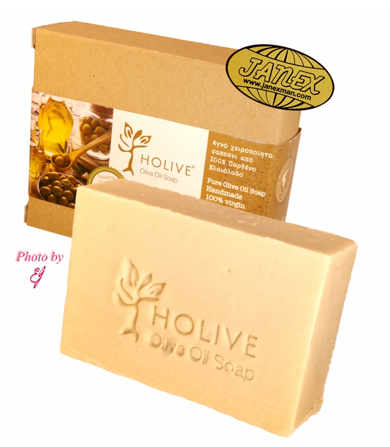 Pure natural olive oil soap in its natural off-white hue and the scent of olive. It contains 100% pure, extra virgin Greek olive oil of premium quality.